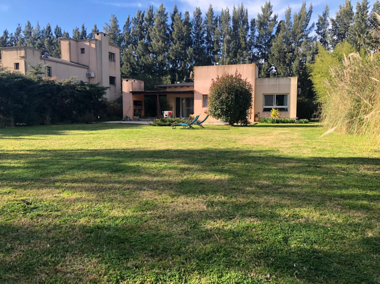 Hermosa casa ubicada en el barrio privado Malibú, ruta 58, Canning, Ezeiza, de los mejores y más seguros, con calles tranquilas y mucho verde. Todo en planta baja, cuenta con un lindo living comedor con ventanales y calefacción por salamandra, aire acondicionado, pisos de porcelanato, cocina adosada con isla, muebles alacena y bajomesada de categoría, amplio lavadero independiente, agua caliente por termotanque, gas envasado. Consta de 3 dormitorios todos con ventanas y placard, muy luminosos con vista al parque, tres baños (uno completo con bañera, uno compartido por dos dormitorios tipo suite, otro en suite con vestidor), garaje con quincho y gran parrilla, galería con vista al parque. Gran patio/jardín de 870 m2 aprox. Sistema de alarma con control remoto y a distancia.