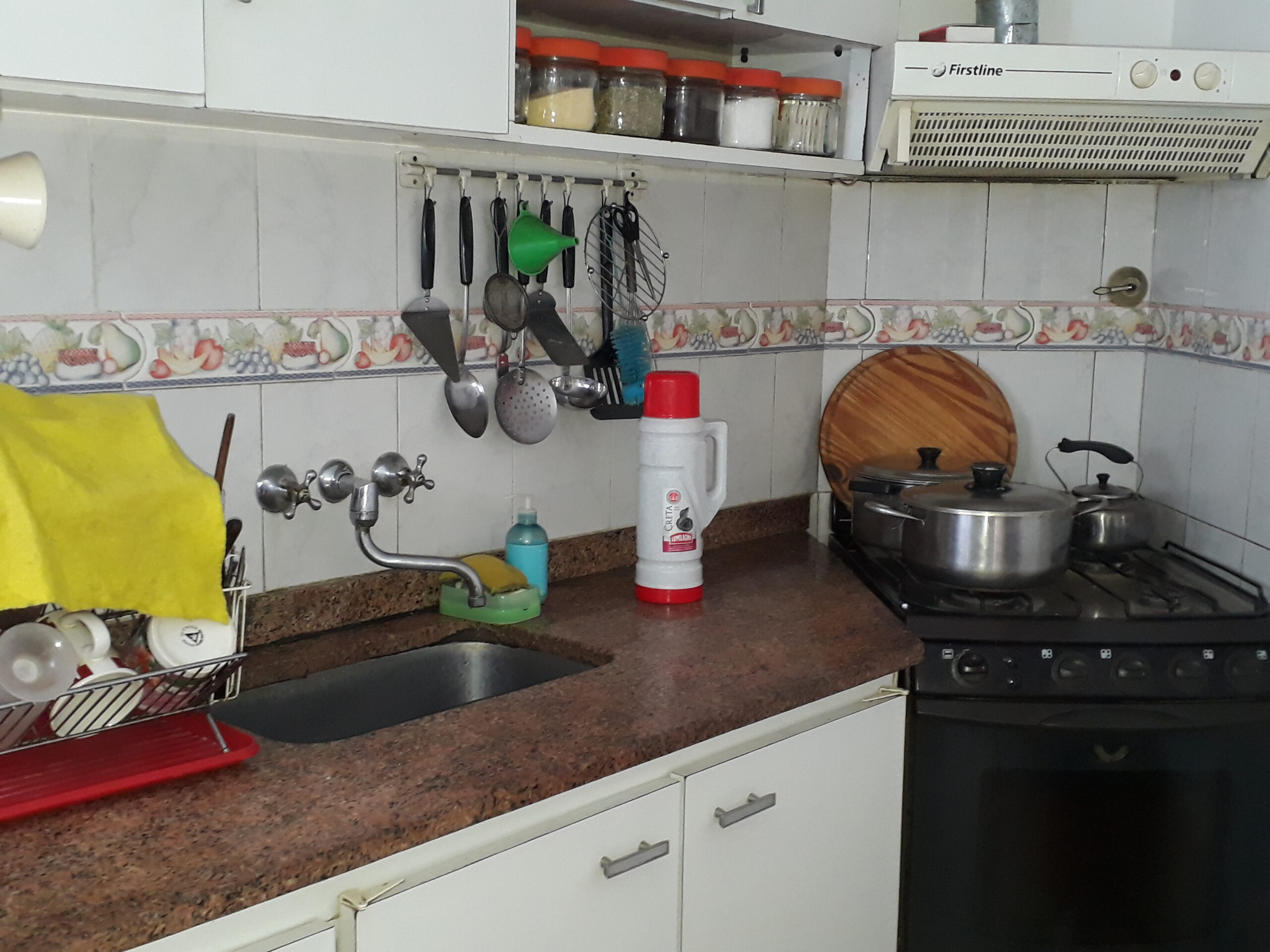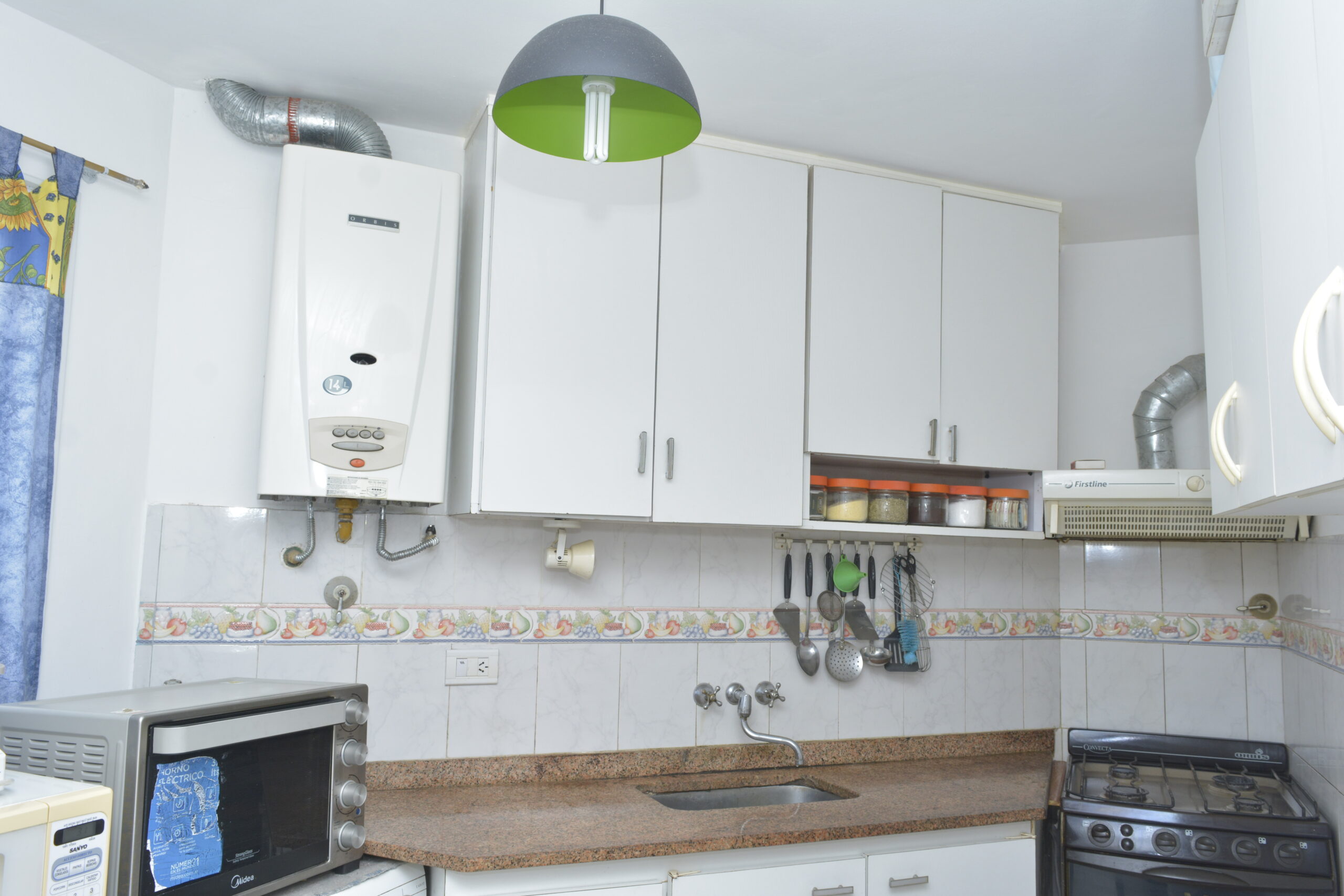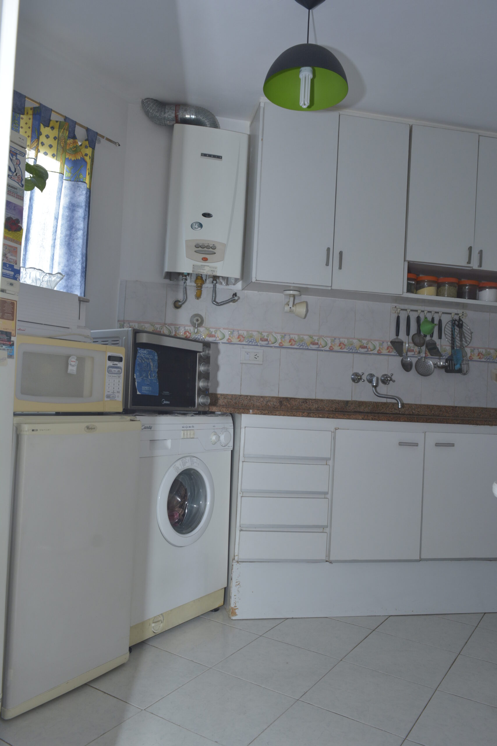 Cocina amplia e independiente con ventilación propia, muebles de alto y bajo mesada, spar calefón a gas, conexión para lavarropas automatico,