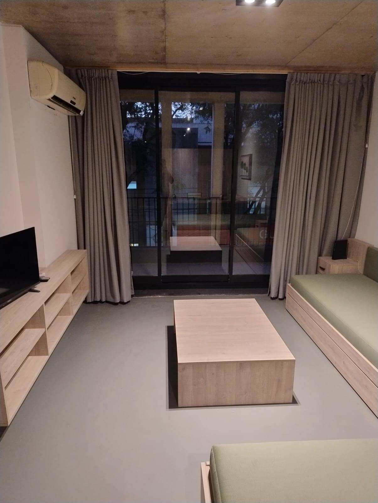 Excelente 1 ambiente en 1er piso con Balcón al Frente. Ambiente con piso de cemento alisado y porcelanato en baño, Cocina separada con muebles completa, (cocina, termo tanque y heladera) Baño completo y vestidor, se vende totalmente amoblado, Muy luminoso, apto profesional.