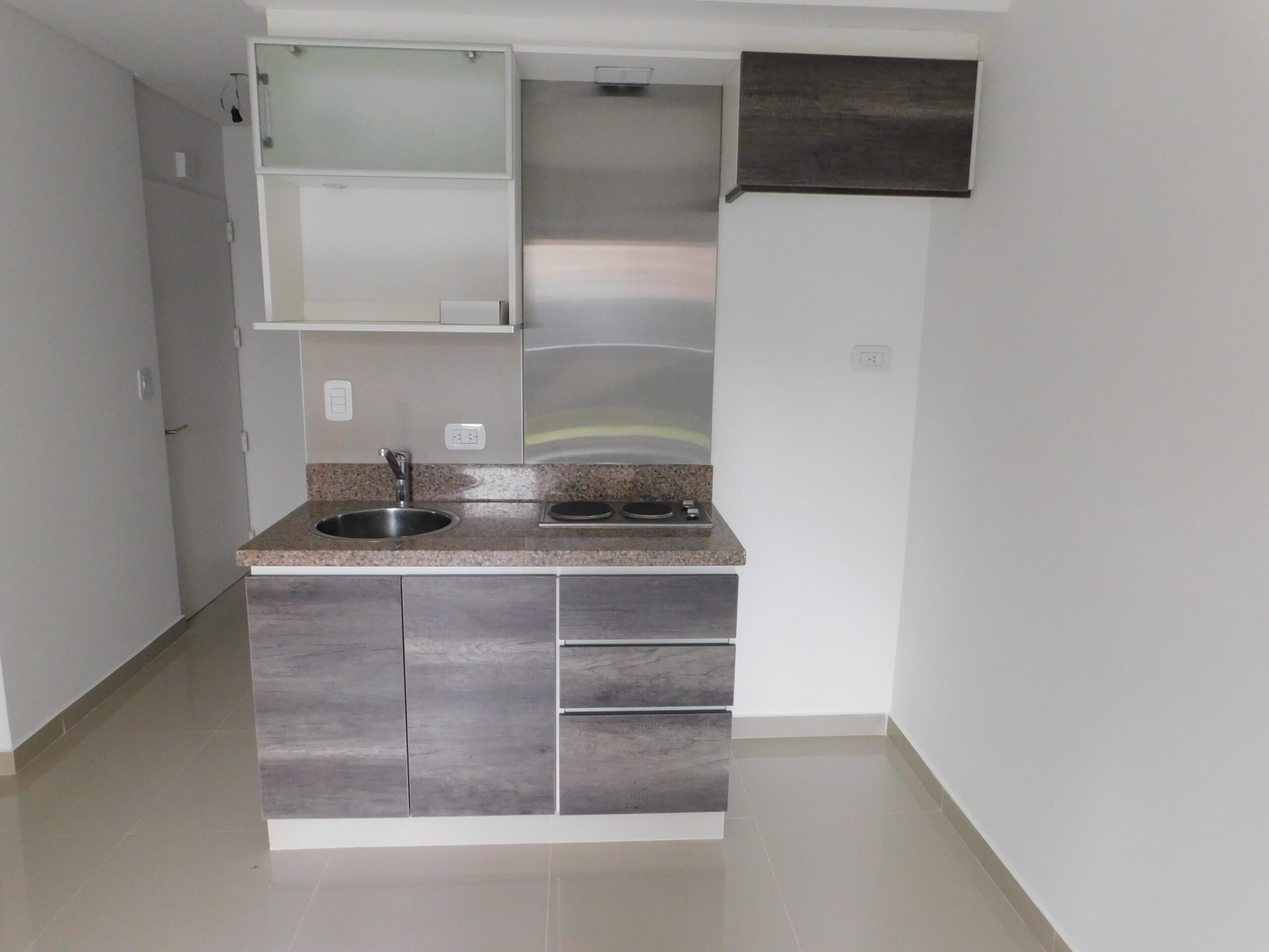 Departamento: Monoambiente al contra frente con Balcón. En primer piso. Excelente Luminosidad. Baño completo. Moderna cocina integrada con artefacto de anafe eléctrico de acero inoxidable marca Domec, mesada de granito, mobiliario de sobre y bajo mesada (lugar para Heladera). Piso de porcelanato. Carpinterías de aluminio anonizado en color gris. Aire Acondicionado Frio Calor Nuevo. Portero Visor color. Dimensiones del ambiente de 5 x 3.10, Balcón 3.10×1 mts. Lugar e instalación para Lavarropas cubierto en balcón.